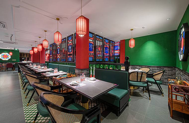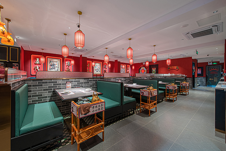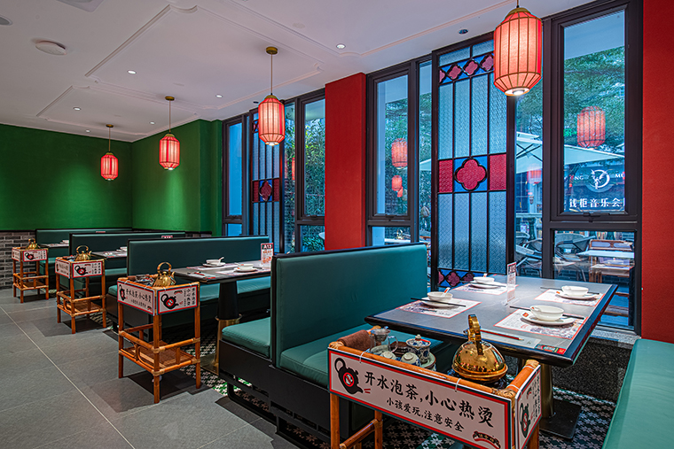 1、用品牌強(qiáng)關(guān)聯(lián)的具體一個(gè)元素串聯(lián)整個(gè)裝飾,形成品牌專屬識(shí)別記憶。空間中我們使用了滿洲窗,用滿洲花窗串聯(lián)整個(gè)門店,與品牌傳達(dá)的西關(guān)老號(hào),五代傳承高度貼合,拍照打卡效果很好,老茶樓的氛圍感迅速出來(lái)了。